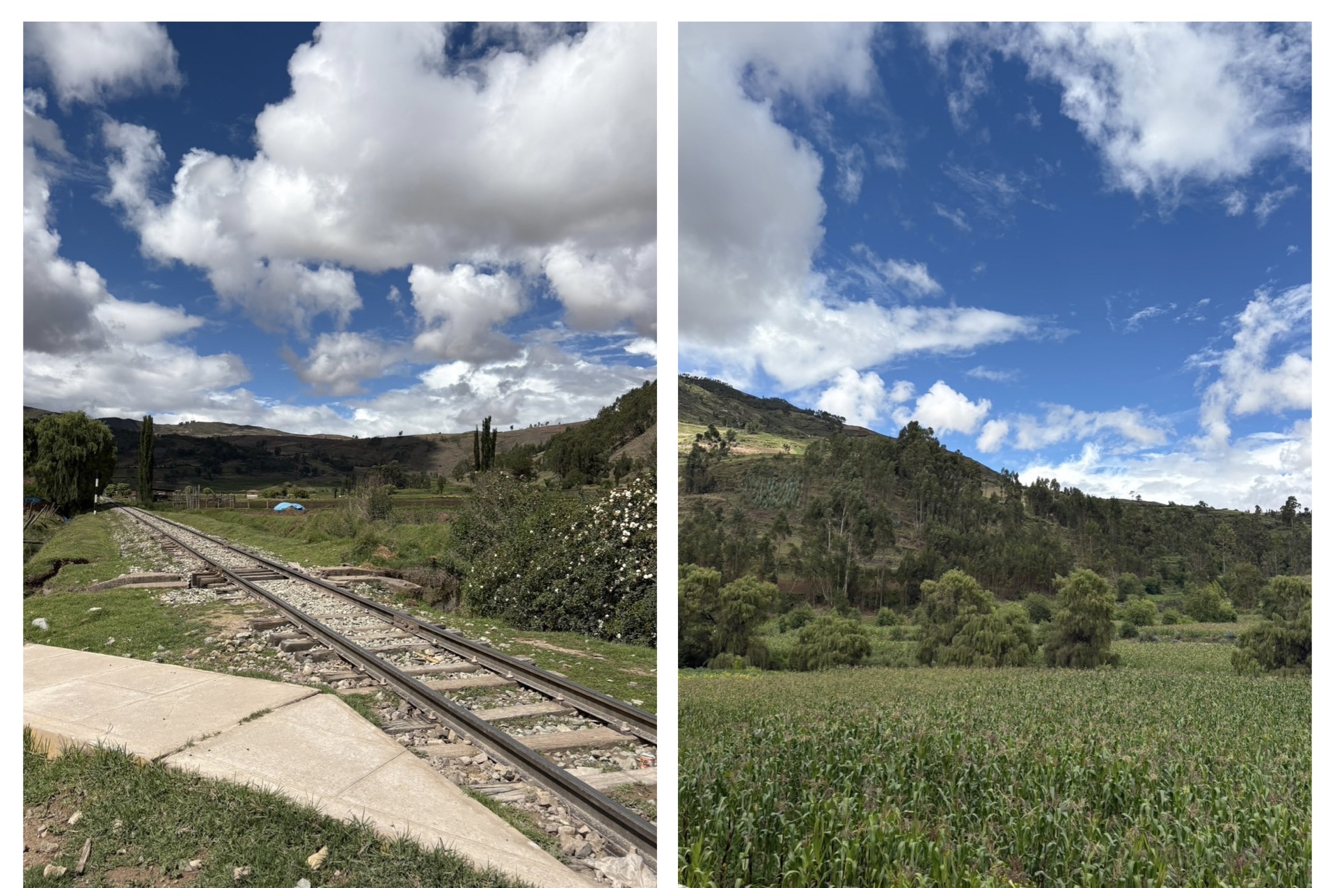 移動中は牛や羊がのんびりと草を食べる風景や、広がるアンデスの山々など、